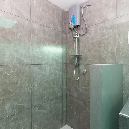 This apartment includes a walk-in shower, a separate toilet, and a washing machine for your comfort. Moreover, there are towels as well.